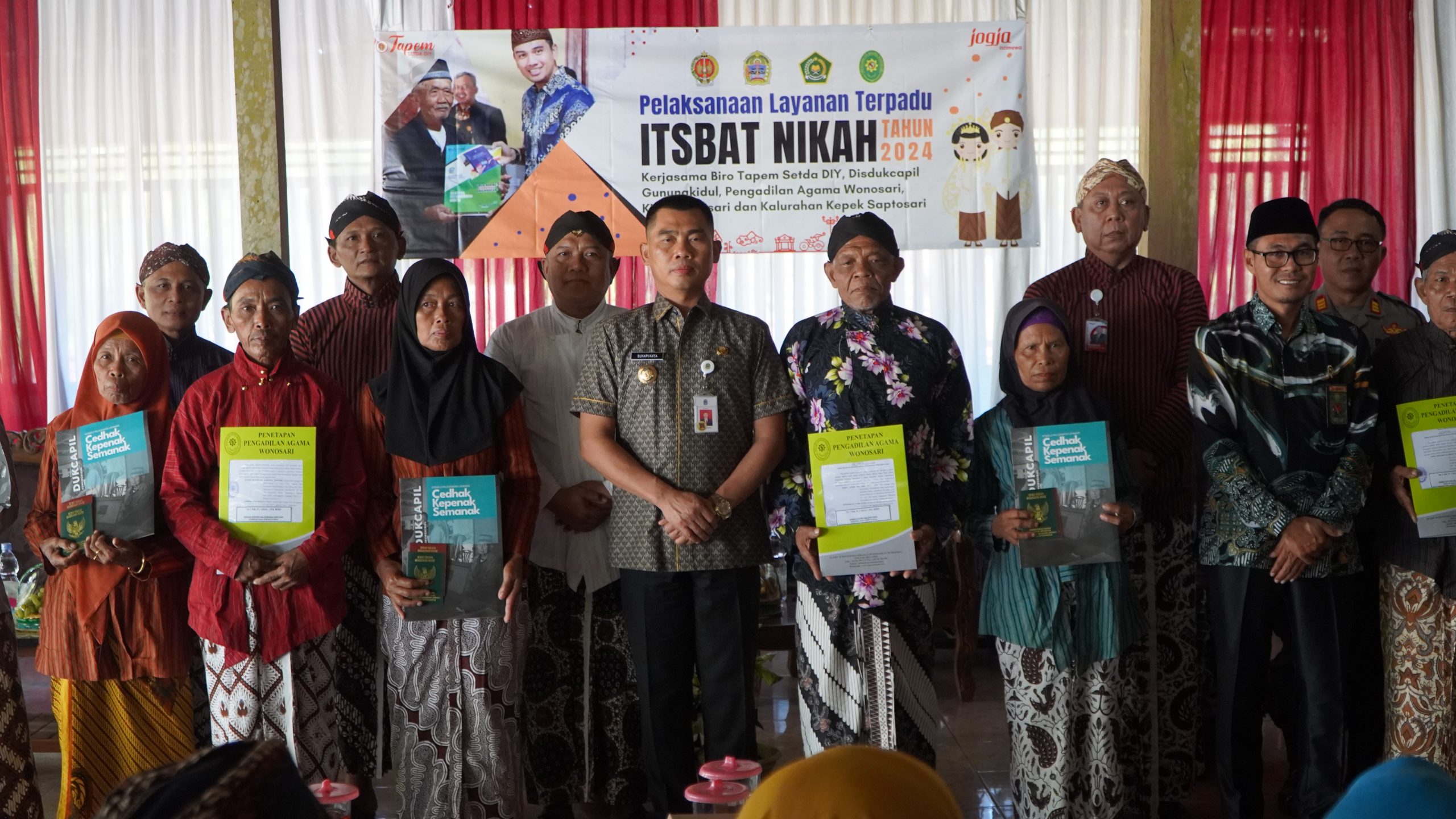 Dinas Kependudukan dan Pencatatan Sipil Kabupaten Gunungkidul bekerja sama dengan Pengadilan Agama Wonosari dan Kantor Kementerian Agama Kabupaten Gunungkidul, pada hari Selasa 16 Mei 2024 sukses menggelar Pelayanan Terpadu Sidang Itsbat Nikah di Balai Kalurahan Kepek, Kapanewon Saptosari. Kegiatan ini dimulai pukul 08.00 WIB dan berlangsung hingga selesai, dengan tujuan untuk memberikan kepastian hukum dan dokumen resmi bagi pasangan yang telah menikah namun belum tercatat secara hukum.