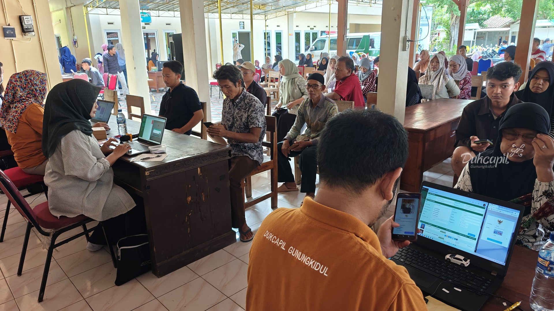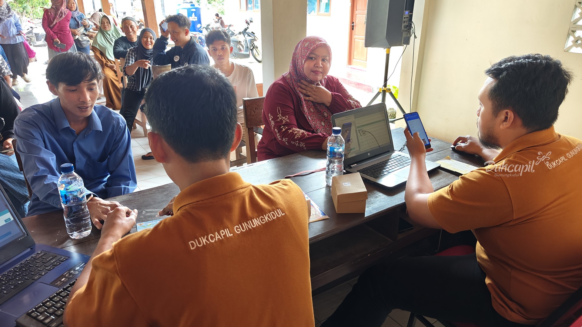 Dinas Kependudukan dan Pencatatan Sipil (Dukcapil) Kabupaten Gunungkidul melaksanakan Pelayanan di Luar Jam Kerja berupa aktivasi Identitas Kependudukan Digital (IKD) dan perekaman KTP Elektronik pada Minggu, 21 Desember 2025. Kegiatan ini berlangsung di Balai Kalurahan Ngalang, Kapanewon Gedangsari.