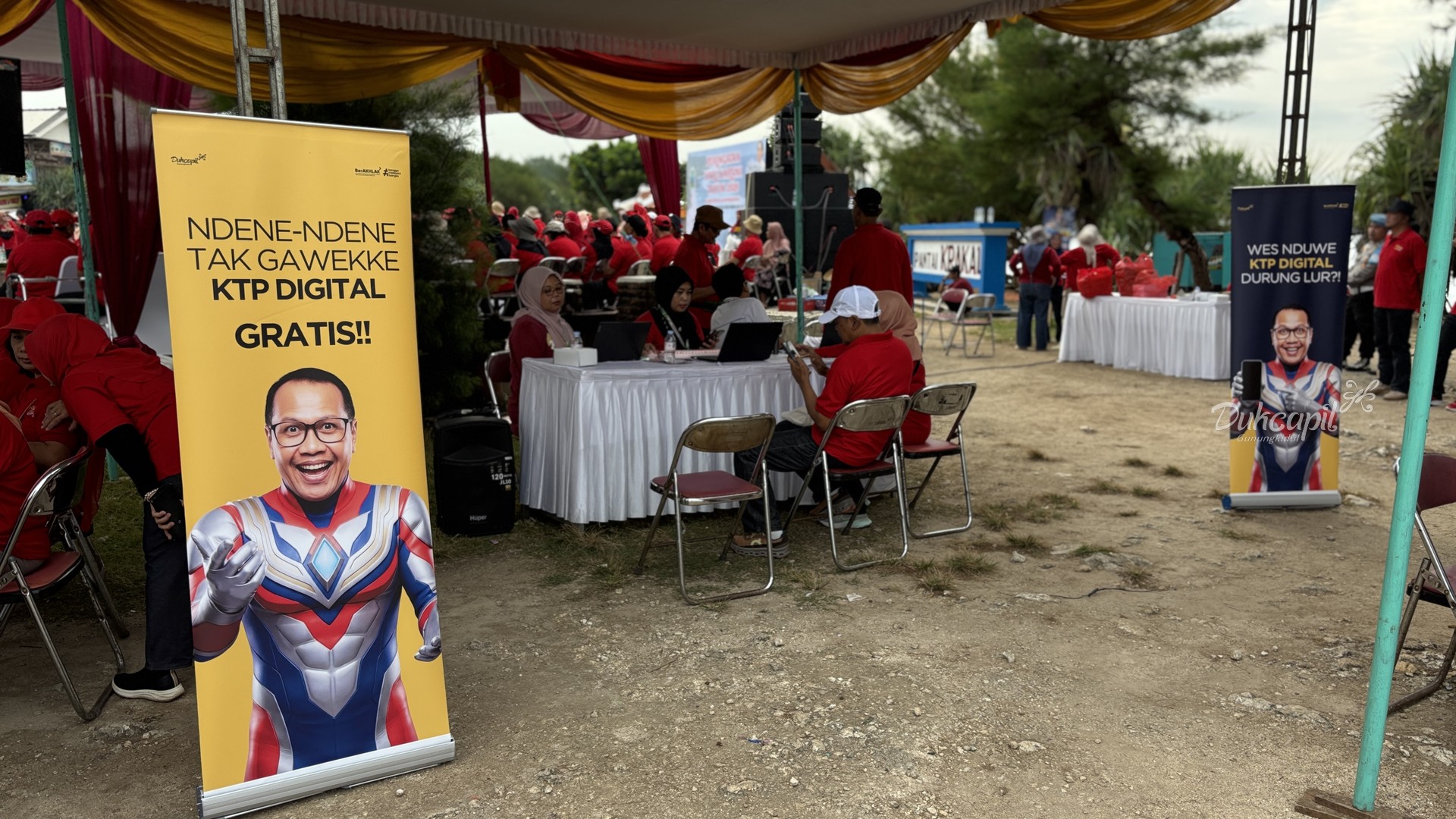 Dinas Kependudukan dan Pencatatan Sipil Kabupaten Gunungkidul turut ambil bagian dalam kegiatan ini dengan membuka layanan aktivasi aplikasi Identitas Kependudukan Digital (IKD). Pelayanan dilaksanakan mulai pukul 07.00 hingga 10.00 WIB, memberikan kemudahan bagi masyarakat untuk mengakses identitas kependudukan secara digital di tengah suasana kegiatan yang berlangsung meriah namun tetap tertib.