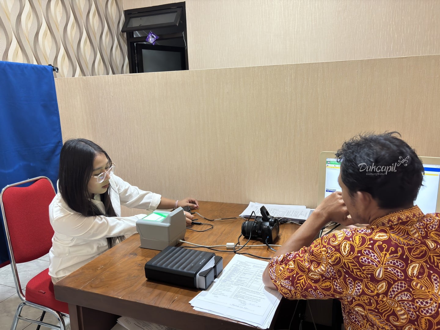 Proses perekaman berlangsung dengan lancar, didampingi oleh petugas Dukcapil Gunungkidul secara ramah dan profesional. Setiap tahapan pelayanan dapat diikuti dengan baik, sehingga seluruh peserta dapat terlayani dengan optimal.